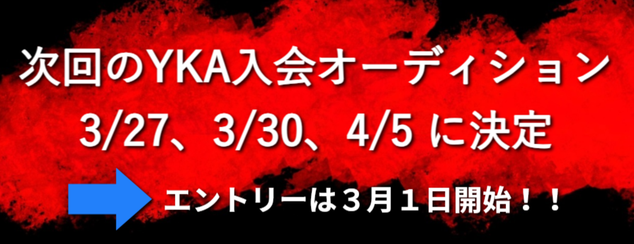 | 入会オーディション時期について | YKA入会オーディションは3~4月、8~9月、12月末(8月の追加日程)の計3期間開かれます。 |